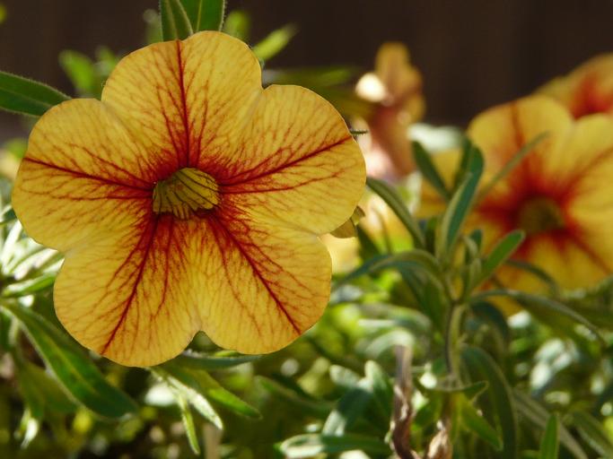 Keywords: flower nature garden flowers summer flowering yellow brindle balcony milionbells minipetunie petunia