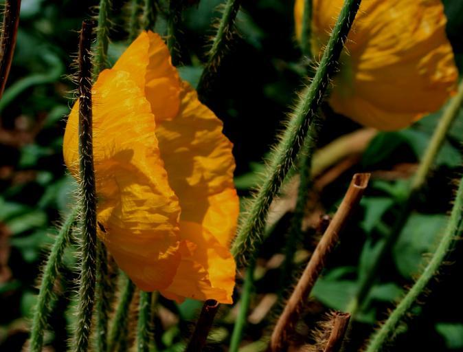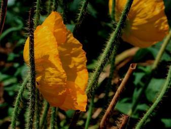 Keywords: flower poppy bloom petals paper-like cup-shaped bright yellow stems green