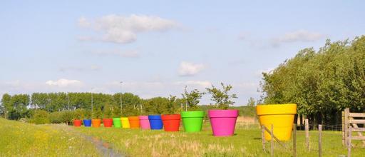 Keywords: flower pots along the highway summer
