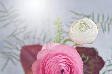 Keywords: flower ranunculus flowers white pink petals spring flower cut flowers close light