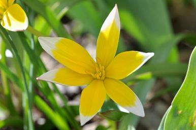 Keywords: flower small star tulip blossom bloom yellow white spring flower garden spring plant nature close