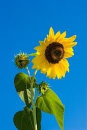 Keywords: flower sunflower sky blue yellow green plant petal floral blossom spring garden color botanical pollen summer nature sunny blooming outdoor sun
