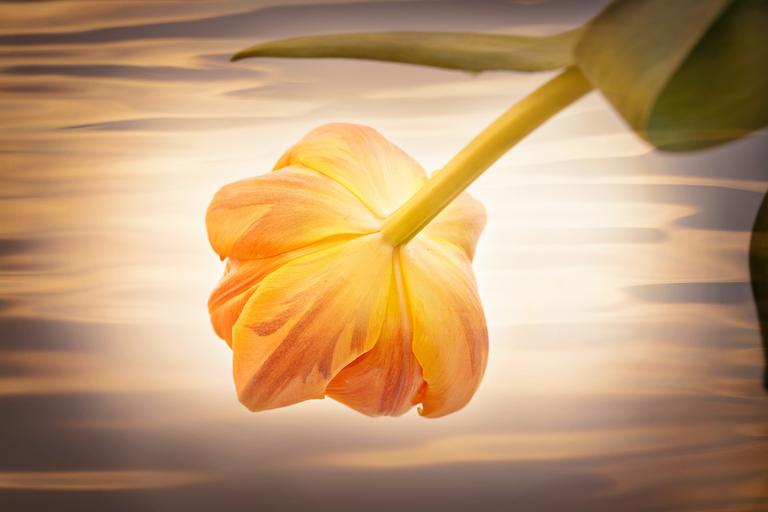 Keywords: flower tulip orange orange tulip orange flower blossom bloom petals evening sun water close