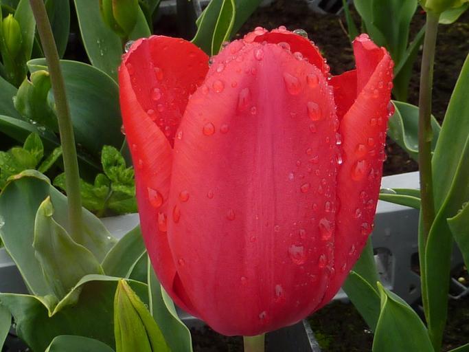 Keywords: flower tulip red spring rain