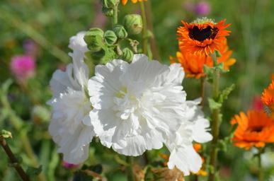 Keywords: flower white flowers nature pollen white summer flowers white flower petals garden green orange spring summer hollyhock trémières