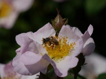 Keywords: flower wild rose bee blossom bloom