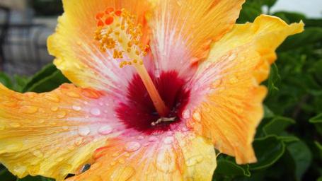Keywords: flower yellow flower nature plant bloom raindrops white colorful vibrant hibiscus
