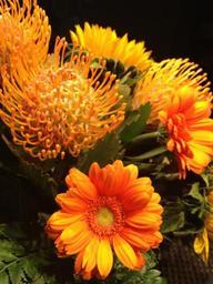 Keywords: flower yellow gerbera plant flowers posy bouquet of flowers bunch of flowers bouquet orange