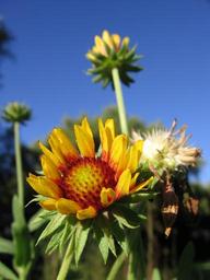 Keywords: flower yellow red sky yellow flowers nature spring garden petal blossom bloom botany summer plant vibrant botanical color colorful floral leaf bright gardening outdoors light close sunny season countryside field golden sunlight fresh park