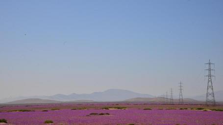 Keywords: flowering desert sky electrical towers flowers purple flower desert nature desert flower violet flower