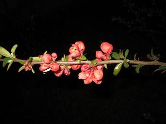 Keywords: flowering twig ornamental quince quince quince flower branch red spring bloom blossom bloom