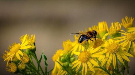 Keywords: flowers bees insect nature yellow pollen garden green autumn macro