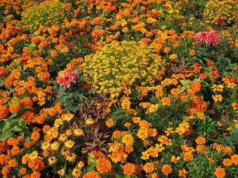 Keywords: flowers blütenmeer bed discounts decoration decorative garden garden exhibition colorful color bright noble red yellow orange german federal horticultural show marigold dahlia