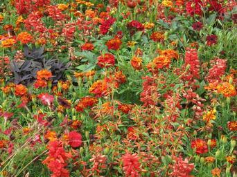 Keywords: flowers blütenmeer bed discounts flower meadow decoration decorative garden garden exhibition colorful color bright noble red yellow orange german federal horticultural show zinnia