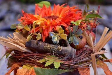 Keywords: flowers bouquet orange red colorful color close dried flowers plant arrangement vase autumn autumn colours