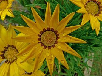 Keywords: flowers coreopsis macro nature garden yellow petals blossomed summer morning dew drop flowering