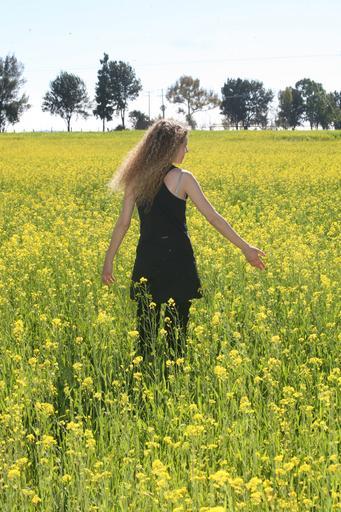 Keywords: flowers field women yellow walk