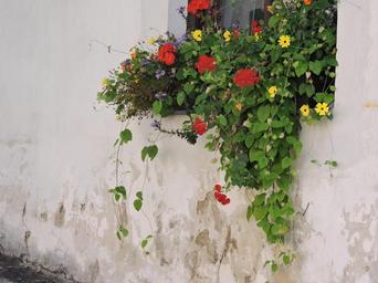 Keywords: flowers house wall window old house historic preservation building