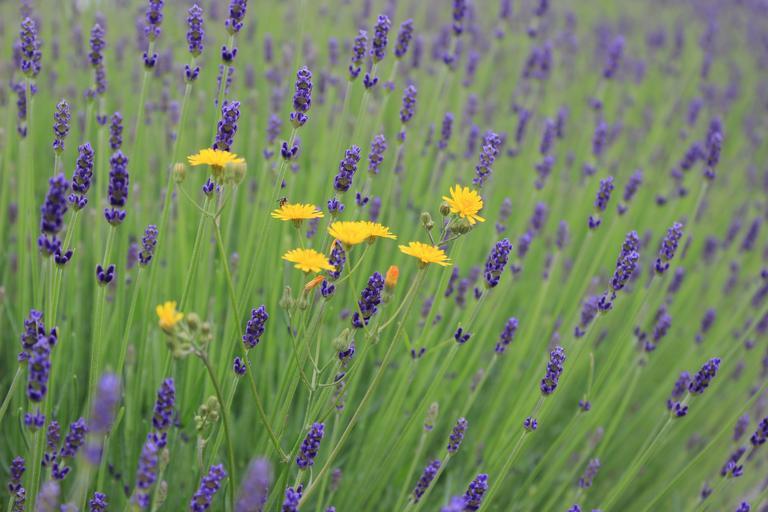 Keywords: flowers lavender lavender flowers insect yellow flowers close inflorescence
