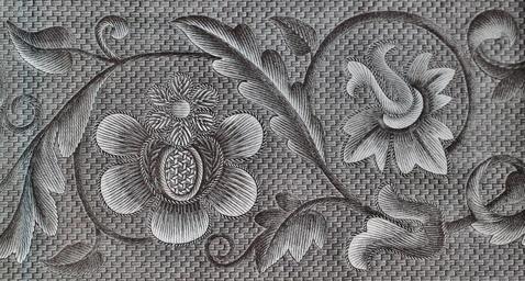 Keywords: flowers painting wallpaper embroidery art floral decorative retro nostalgia spiral plant vine stems flower vine engraving black and white