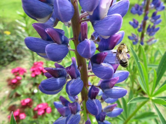 Keywords: flowers plant green blue violet bee