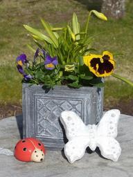 Keywords: flowers spring pot garden table grass butterfly ladybug