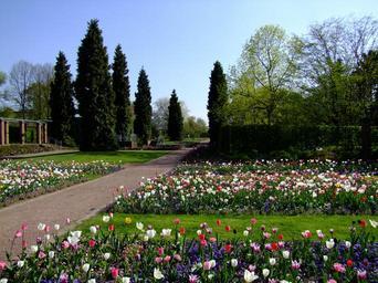 Keywords: flowers spring tulips flower bed south park park plant bloom flora ornamental plants conifers tree spring düsseldorf germany sea of flowers blütenmeer colorful