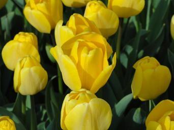 Keywords: flowers tulips yellow spring blooms blossoms green plants bulbs color petal
