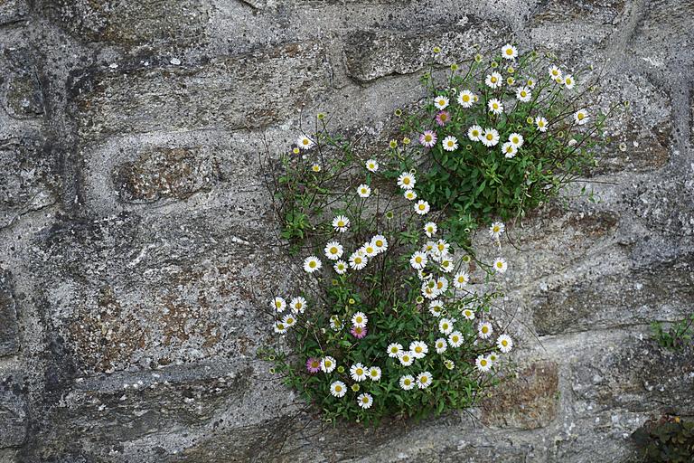 Keywords: flowers white wall daisies city urban summer flowers flora flowering botany