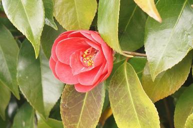 Keywords: flowers wood red camellia