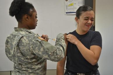 | Keywords: Flu shot 151006-N-ZZ999-014.jpg en SAN ANTONIO Army Private 1st Class Kiasia Thompson from Brooks Army Medical Center gives Mass Communication Specialist 1st Class Jacquelyn D Childs from Navy Medicine Education and Training Command an influenza vaccine at NMETC headquarters on Joint Base San Antonio - Fort Sam Houston NMETC is part of a small but growing Navy footprint in San Antonio as the military continues to consolidate medical training and education facilities 2015-10-06 Oct 6 2015 https //www dvidshub net/image/2218187 151006-N-ZZ999-014 2015-10-07 10 08 SAN ANTONIO TX US 3 PD-USGov-Military-Navy Joint Base San Antonio Images from DoD uploaded by Fæ |