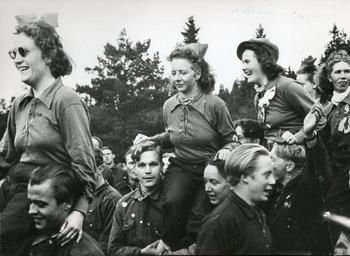 Keywords: people groupshot blackandwhite outdoor black and white Øreryd flyktningleir, Sverige, sommeren 1941. RA/PA-1209/Uc/67/3/S 1040 Øreryd flyktningleir, Sverige, sommeren 1941. RA/PA-1209/Uc/67/3/S 1040