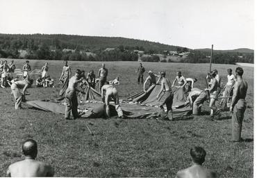 | Keywords: outdoor blackandwhite black and white NORSK RESERVEPOLITI UTDANNES I SVERIGE En av de norske reservepolitiforlegninger i Sverige er forlegningen på Stråtenbro. Bildet viser mannskap tilhørende et sanitetskompani beskjeftiget med å reise et syketelt. Stockholm 10.11.44 RA/PA-1209/Uc/67/3/S 5300 NORSK RESERVEPOLITI UTDANNES I SVERIGE En av de norske reservepolitiforlegninger i Sverige er forlegningen på Stråtenbro. Bildet viser mannskap tilhørende et sanitetskompani beskjeftiget med å reise et syketelt. Stockholm 10.11.44 RA/PA-1209/Uc/67/3/S 5300 |