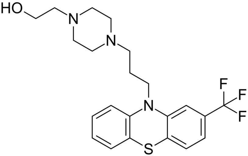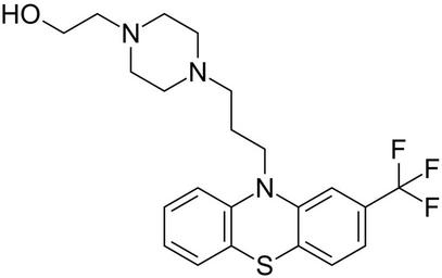 | Keywords: Fluphenazine 200.svg validSVG Structure of 2- 4- 3- 2- trifluoromethyl -10H-phenothiazin-10-yl propyl piperazin-1-yl ethanol Own 2014-05-25 Emeldir <span class signature-talk ></span> thumb left Chemical structure verified https //upload wikimedia org/wikipedia/commons/2/2a/Fluphenazine_200 svg 1S/C22H26F3N3OS/c23-22 24 25 17-6-7-21-19 16-17 28 18-4-1-2-5-20 18 30-21 9-3-8-26-10-12-27 13-11-26 14-15-29/h1-2 4-7 16 29H 3 8-15H2 PLDUPXSUYLZYBN-UHFFFAOYSA-N 69-23-8 Synonyms <small><nowiki>2- 4- 3- 2- Trifluoromethyl -10H-phenothiazin-10-yl propyl piperazin-1-yl ethanol 2-4-3-2- trifluoromethyl phenothiazin-10-ylpropylpiperazin-1-ylethanol 2- 4-3- 2-Trifluoromethyl-phenothiazin-10-yl -propyl-piperazin-1-yl -ethanol 2- 4-3- 2-Trifluoromethylphenothiazin-10-yl propylpiperazin-1-yl ethanol 4-3-2- Trifluoromethyl -10H-phenothiazin-10-ylpropyl-1-piperazineethanol 4-3-2- Trifluoromethyl -10H-phenothiazin-10-ylpropyl-1-piperazineethanol dihydrochloride A 4077 Anatensol Calmansial CCRIS 4032 Dapotum Elinol Flufenatsiini Flufenatsiinihydrokloridi Flufenazin Flufenazin-dihydrochlorid Flufenazin-hidroklorid Flufenazina Flufenazina hidrocloruro de Flufenazine Flufenazinhydroklorid Flufenazino hidrochloridas Flufenazyny chlorowodorek Fluorfenazine Fluorophenazine Fluorophenazine dihydrochloride Fluphenazine Fluphenazine chloride Fluphenazine Decanoate Generic Fluphenazine Hydrochloride Generic Prolixin Prolixin Decanoate Fluphenazine dihydrochloride Fluphenazine Dihydrochloride Fluphenazine Diydrochloride Fluphenazine hydrochloride Fluphenazine Hydrochloride Fluphenazini Dihydrochloridum Fluphenazini Hydrochloridum Fluphenazinum Fluphénazine chlorhydrate de Flupnepatine hydrochloride Ftorphenazine HSDB 3334 Liogen Lyorodin Mirenil Modecate Moditen NSC 179197 Omca Pacinol Permitil Permitil hydrochloride Phthorphenazine Prolixin S-94 Sevinol Siqualine Siqualon SQ 4918 Squibb 4918 Tensofin Trancin Triflumethazine Valamina Vespazine</nowiki></small> PD-chem Fluphenazine |