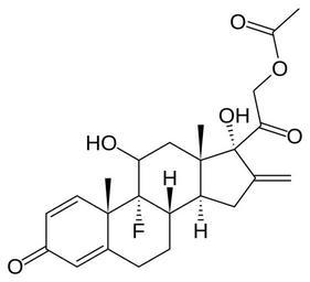 | Keywords: Fluprednidene acetate.svg Skeletal formula of fluprednidene acetate Created using http //www acdlabs com/download/chemsk html ACD/ChemSketch 10 0 and Inkscape Own 2007-07-01 Fvasconcellos 00 43 2 July 2007 UTC Corticosteroids Acetate esters |