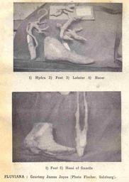| Keywords: Fluviana-A (200 dpi).jpg Fluviana Adolph Johannes Fischers Fluviana photographs from transition 16/17 1929 The river pictures published in this number were discovered by Mr James Joyce during a visit in Raitenhaslach Austria last summer They represent tree-roots collected by a resident from the mass washed up in the Salzach River Some of the names he has given these curious formations of nature are žSerpent which seduced Eve ; žNine-headed Hydra ; žSeadog ; žSea-Spider ; žLeech ; žGazelle-Head ; žMammoth-Head ; žRiver Eel ; žClub-Foot ; žFlat-Foot ; žStaff of the Wandering Jew ; žLizard ; žSand-Viper ; žSnail ; žNail of Noah ™s Ark ; žSea-Miss ; žKing Serpent with Little Golden Crown ; žPig ™s Ear ; žPincers ; žSea-Lobster He also collected stone formations washed up in the river and gave them such names as these žAdam ™s Shoe-Last ; žEve ™s Flat Iron ; žHeart lost in Heidelberg ; žStone of the Wise They were photographed by Adolph Fischer of Salzburg Eugene Jolas transition 16/17 Glossary 1929 Popmuseum 15 29 22 Sep 2010 CEST 1928 aufgenommen 1929 veröffentlicht Adolph Johannes Fischer 1885-1936 PD-old Original upload log de wikipedia Ireas CommonsHelper page de wikipedia Fluviana-A_ 28200_dpi 29 jpg 2010-09-22 13 29 Popmuseum 941×1322× 71159 bytes <nowiki> Andere Versionen </nowiki> Black and white photographs Conceptual art Adolph Johannes Fischer |