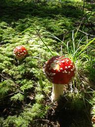 Keywords: fly agaric forest mushroom grass moss toxic red fly agaric mushroom autumn poison mushroom white dots