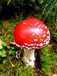 Keywords: fly agaric forest toxic red fly agaric mushroom moss fliegenpilz forest floor spotted red nature mushroom top view