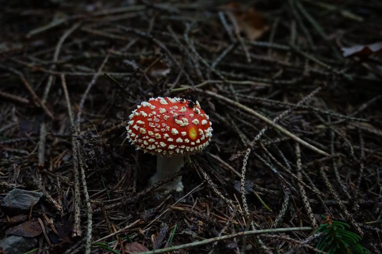 Keywords: fly agaric mushroom forest forest floor branches aesthetic spruce autumn nature forest mushroom toxic red red fly agaric mushroom gift risk lamellar