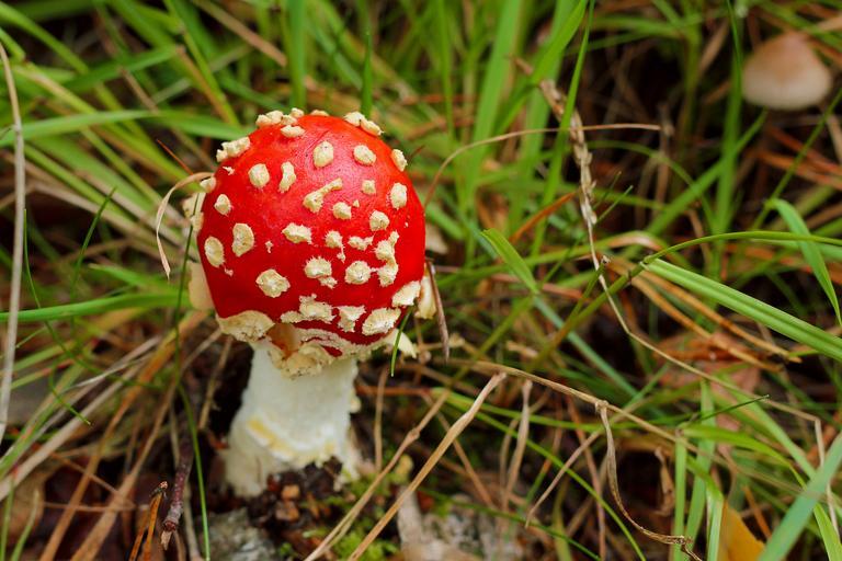 Keywords: fly agaric mushroom toxic red toadstool forest mushroom white dots fungal species forest floor