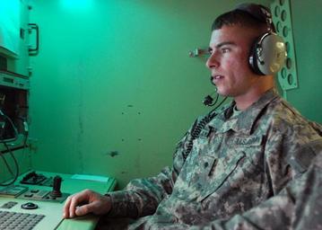 | Keywords: Flying UAVs not a game for Soldiers of Task Force XII DVIDS87524.jpg en Spc Samuel McKamey a Cloverdale Ind native sits at the controls of a Shadow unmanned aerial vehicle May 7 McKamey is a UAV operator for 2nd Brigade Combat Team 101st Airborne Division but currently works as the standards officer for Company G Task Force XII He and his fellow Soldiers launch and recover the aircraft in support of Multi-National Division “ Baghdad 2008-05-07 Sgt 1st Class Chris Seaton https //www dvidshub net/image/87524 87524 2008-05-09 11 16 TAJI IQ PD-USGov 101st Airborne Division Images from DoD uploaded by Fæ |