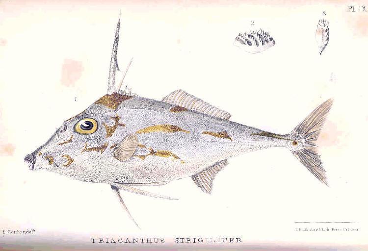 | Keywords: FMIB 32881 Triacanthus Strigilifer.jpeg Triacanthus Strigilifer Subject Tricanthus strigilifer Tag Fish 1850 Cite book Catalogue of Malaysian Fishes Cantor Theodore Edward Calcutta Baptist Mission Press 1850 Plate IX Creator Theodore Edward Cantor PD-UWASH-FMIB Institution University of Washington FMIB-source accession number 32881 Images from the Freshwater and Marine Image Bank to check Theodore Edward Cantor Pseudotriacanthus strigilifer | ||||