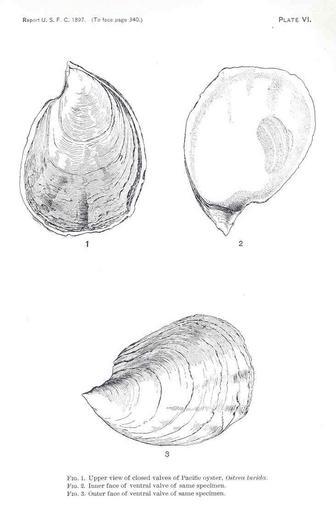 | Keywords: FMIB 33791 Pacific Oyster, Ostrea turida.jpeg check categories 15 August 2015 3 Pacific Oyster Ostrea turida Upper View of Closed Valves 1 ;; Inner Face of Ventral Valve 2 ;; Outer Face of Ventral Valve 3 Subject Olympia oyster Crassostrea gigas Tag Shellfish 1896/1897 Cite book Notes on Clam-Culture Washington DC Government Printing Office 1898 Report of the Commissioner United States Commission of Fish and Fisheries 1896/1897 Plate VI author PD-UWASH-FMIB Institution University of Washington FMIB-source accession number 33791 Images from the Freshwater and Marine Image Bank to check Ostrea lurida Crassostrea gigas Oysters |