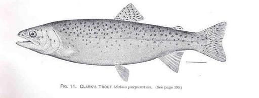 | Keywords: FMIB 34167 Clark's Trout (Salmo purpuratus).jpeg Clark's Trout Salmo purpuratus Subject Trout Salmo purpuratus Tag Fish 1889 Cite book Report on the salmon and salmon rivers of Alaska with notes on the conditions methods and needs of the salmon fisheries Bean Tarleton H Washington DC Government Printing Office 1891 Bulletin of the United States Fish Commission vol 9 1889 Plate XLIX-11 Creator Tarleton Hoffman Bean PD-UWASH-FMIB Institution University of Washington FMIB-source accession number 34167 Images from the Freshwater and Marine Image Bank to check Tarleton Hoffman Bean Oncorhynchus mykiss |