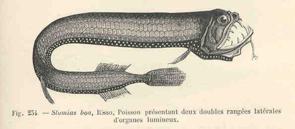 Keywords: FMIB 34610 Stomias boa, Risso, Poisson presentant deux doubles rangees laterales d'organes lumineux.jpeg Stomias boa Risso Poisson presentant deux doubles rangees laterales d'organes lumineux Subject Stomias Stomias boa Tag Fish 1886 Cite book Explorations Sous-Marines Perrier Edmond Paris France Librairie Hachette et Cie 1886 Fig 254 Creator Edmond Perrier PD-UWASH-FMIB Institution University of Washington FMIB-source accession number 34610 Images from the Freshwater and Marine Image Bank to check Edmond Perrier Stomias boa |