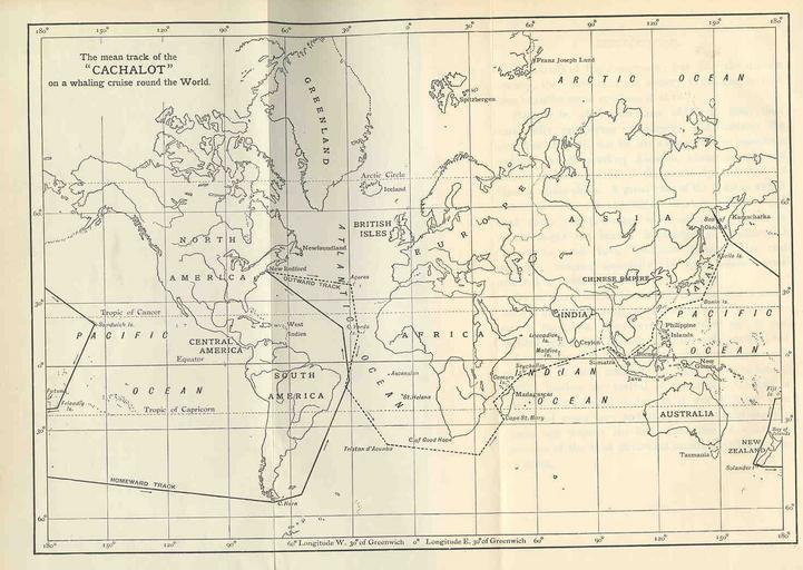 | Keywords: FMIB 34726 Mean Track of the 'Cachalot' on a Whaling Cruise Round the World.jpeg Mean Track of the 'Cachalot' on a Whaling Cruise Round the World Subject Voyages and travels Whaling ships Cachalot Ship Tag Aquatic Mammals 1899 Cite book Cruise of the Cachalot Round the World After Sperm Whales Bullen Frank T New York D Appleton and Co 1899 Facing page 1 Creator Frank Thomas Bullen PD-UWASH-FMIB Institution University of Washington FMIB-source accession number 34726 Frank Thomas Bullen Cachalot ship Circumnavigation 19th-century maps of the world |