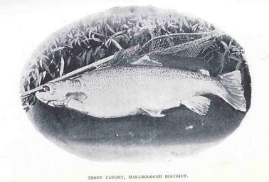 | Keywords: FMIB 34984 Trout Caught, Marlborough District.jpeg Trout Caught Marlborough District Subject Trout Fishing Geographic Subject New Zealand--Marlborough District Tag Fish 1904 Cite book Trout-Fishing and Sport in Maoriland Hamilton G D Wellington New Zealand Government Printing Office 1904 Facing page 276 G D Hamilton PD-UWASH-FMIB Institution University of Washington FMIB-source accession number 34984 Images from the Freshwater and Marine Image Bank to check G D Hamilton Unidentified Salmonidae Fishing |