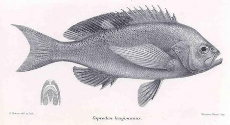 | Keywords: FMIB 36043 Caprodon longimanus.jpeg check categories 15 August 2015 2 Caprodon longimanus Subject Caprodon longimanus Tag Fish 1895 Cite book Catalogue of the Perciform Fishes in the British Museum 2nd ed vol 1 Boulenger George Albert London England British Museum 1895 Plate XII Creator George Albert Boulenger PD-UWASH-FMIB Institution University of Washington FMIB-source accession number 36043 Images from the Freshwater and Marine Image Bank to check George Albert Boulenger Caprodon longimanus |