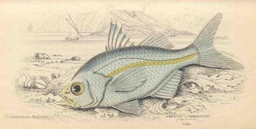 | Keywords: FMIB 36075 Ambassis Commersonii (Commerson's Ambassis).jpeg Ambassis Commersonii Commerson's Ambassis India Subject Perch Ambassis Tag Fish 1843 Cite book Fishes of the Perch Family Jardine William Edinburgh Scotland W H Lizars 1843 Naturalist's Library vol XXXVIII Facing page 124 Creator William Jardine PD-UWASH-FMIB Institution University of Washington FMIB-source accession number 36075 Images from the Freshwater and Marine Image Bank to check William Jardine Ambassis ambassis India | ||||