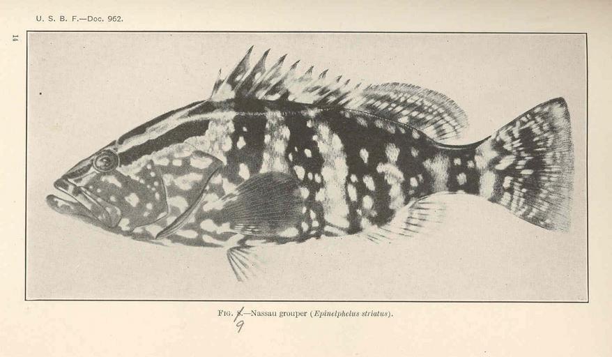 Keywords: FMIB 37663 Nassau grouper (Epinelphelus striatus).jpeg Nassau grouper Epinelphelus striatus Subject Epinephelus Groupers Tag Fish 1924 Cite book Fisheries of Key West and the Clam Industry of Southern Florida Schroeder William C Washington DC Government Printing Office 1924 Report of the United States Commissioner of Fisheries for the Fiscal Year 1923 with Appendices Fig 9 Creator William Charles Schroeder PD-UWASH-FMIB Institution University of Washington FMIB-source accession number 37663 Images from the Freshwater and Marine Image Bank to check William Charles Schroeder Epinephelus striatus